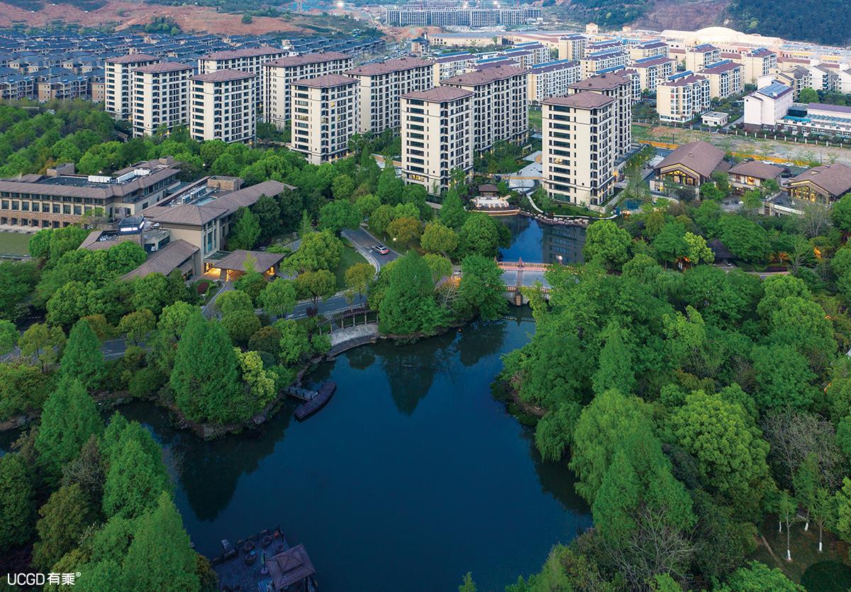 场地位于万科公望七期地块,周围是建成别墅,北侧有一片村落,西侧为沿湖景观带,环境优美,东侧为城市道路,环境相对较差。建筑对北面村落的日照遮挡,东西两侧景观差异对建筑分布的影响以及建筑风格和已有建筑的统一,是设计过程中需要考虑的问题。